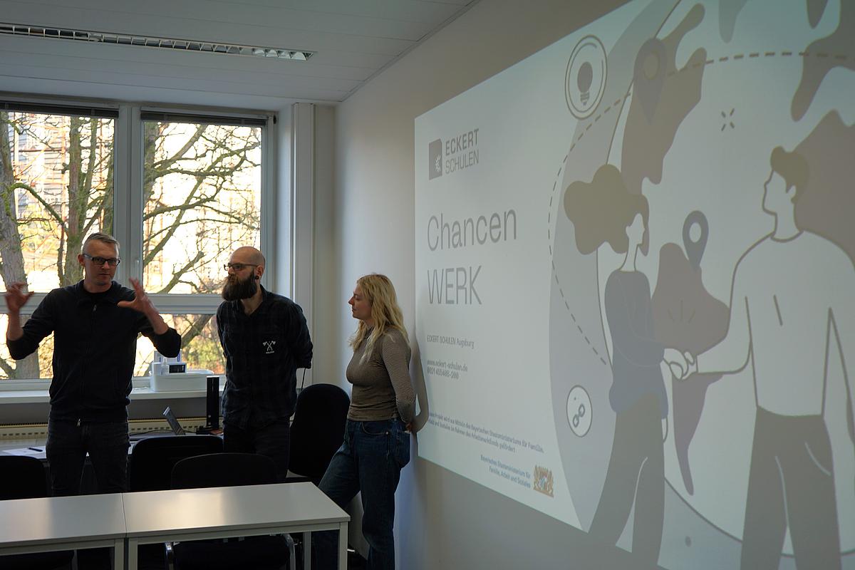 Mit dem Projekt ChancenWERK schaffen die Eckert Schulen in Augsburg ein neues Angebot zur gezielten Vorbereitung junger Menschen auf eine duale Berufsausbildung. Zum Projektauftakt kamen Vertreterinnen und Vertreter des Jobcenters Augsburg Stadt zusammen, um Inhalte, Ziele und Perspektiven gemeinsam zu beleuchten.