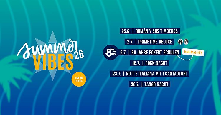 Auch 2026 dürfen sich Besucherinnen und Besucher wieder auf die etablierte Konzertreihe „Summer Vibes“ freuen. Das Programm für den Juli steht bereits fest und bietet eine abwechslungsreiche Mischung aus Live-Musik, Tanz und besonderen Eventformaten.