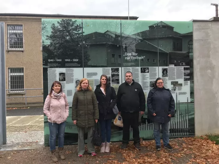 Anschließend ging es auf einen kurzen Spaziergang zur ehemaligen JVA Kaßberg. Dort wurde eine Gedenkstelle errichtet, die an die Inhaftierten der NS-Zeit und des SED-Regimes erinnert. In diesem Gefängnis waren Menschen inhaftiert, die oftmals von der Bundesrepublik freigekauft wurden. „Diese eindrückliche Darstellung der Vergangenheit und der Blick hinter die mit Stacheldraht versehenen Mauern stimmte uns sehr nachdenklich“, sagt Thost.