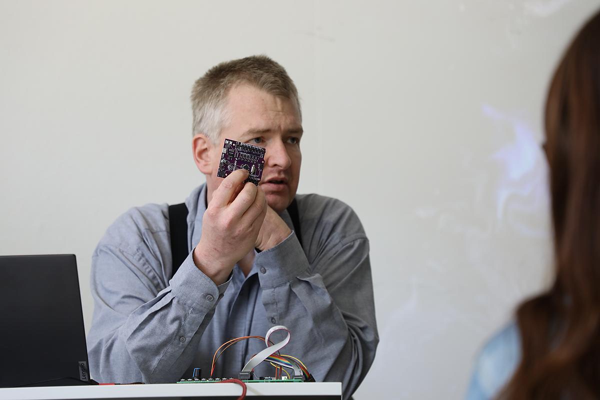 Im Mittelpunkt des Tages stand ein Workshop zum Nachhaltigen Bauen. Gemeinsam entwickelten die Teilnehmerinnen Konzepte für ein Tiny House, das vor allem funktional, kosteneffizient und nachhaltig gestaltet sein sollte. Im ersten Schritt überlegten die Teilnehmerinnen, welche Bedürfnisse das zukünftige Zuhause abdecken muss. Darauf aufbauend entwarfen sie eigene Grundrisse und planten die räumliche Aufteilung in der Draufsicht. Die Herausforderung bestand darin, auf kleinem Raum möglichst viele Funktionen unterzubringen. Weitere Einblicke boten ein Vortrag von Dr. Weber zum Thema Mikrocontroller sowie ein Besuch im Roboterlabor, wo die Teilnehmerinnen selbst Roboter steuern konnten.