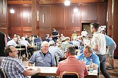 Regenstauf. Wo sonst die Studierenden über ihren Prüfungen brüten oder die Absolventen ihre Abschlusszeugnisse stolz entgegennehmen, herrschte am Donnerstag, den 06. Juni 2019 ab 19 Uhr Wettkampfstimmung in bayerischer Gemütlichkeit: Die Eckert Schulen luden zum 1. Preisschafkopf in der Firmengeschichte. Studierende, Mitarbeiter, Firmenpartner oder externe Spieler: Rund 200 Gäste folgten dieser Einladung und spielten an 50 Tischen um attraktive Gewinne.