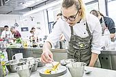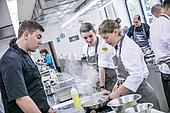Der nächste Morgen. Ausgeruht und in voller Kochmontur sind die Nachwuchsprofis bereits voll in Action. Vom Köchecamp-Teilnehmer zum Referenten: Tobias Bätz ist mittlerweile Küchenchef im Restaurant von TV-Koch Alexander Herrmann. In seinem Workshop stellt er kreative Prozesse in den Fokus. Gekonnt beweist er, welche Vielfalt an Gerichten sich mit nur vier Zutaten kreieren lassen und so moderne Küchenarchitektur entsteht. Bei Kochprofi und Unternehmer Markus Haxter geht es um moderne Garmethoden. Der gelernte Küchenmeister zeigt, welche Geschmackswelten sich durch vakumieren, konservieren oder Aromaversiegeln öffnen. Der prämierte Patissier Matthias Mittermeier lockt wiederum mit süßen Verführungen der besonderen Art: Arbeitstechniken aus der molekularen Patisserie ist das Leitthema seines Workshops. Mit Marketa Schellenberg kam vegane Küche 3.0 auf die Teller.