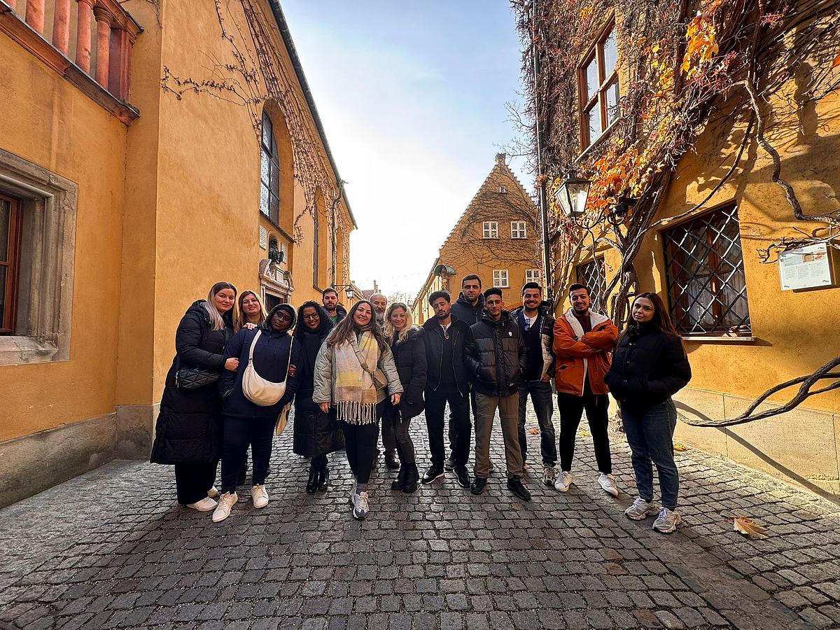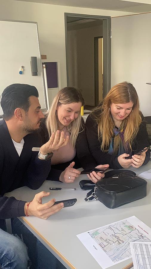 Über eine App erhielten die Gruppen abwechslungsreiche Aufgaben, die Zusammenarbeit, Kreativität und sprachliches Handeln erforderten. Gemeinsame Übungen wie Pantomime, das Zuordnen bekannter Orte oder das Singen von Hymnen förderten den Austausch und schufen eine offene, motivierende Atmosphäre. Im weiteren Verlauf führte die Route durch zentrale Stationen Augsburgs, darunter die Fuggerei, das Grandhotel Cosmopolis, der Augsburger Dom, die Römermauer am Dom und die Stadtbücherei. Geschichte, Gegenwart und Alltagskultur wurden so unmittelbar erlebbar.