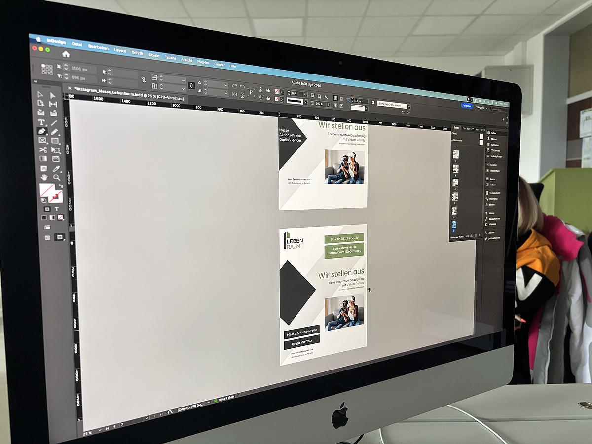 Wie entsteht aus einer Aufgabenstellung ein konsistenter Markenauftritt? Dieser Herausforderung stellten sich die angehenden Mediengestalter Digital und Print (m/w/d) am 17. Februar 2026. Für das fiktive Architekturbüro „Leben.Raum“ konzipierten sie ein durchgängiges Erscheinungsbild, das analoge und digitale Medien gleichermaßen umfasst.