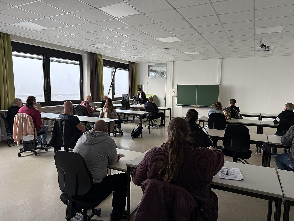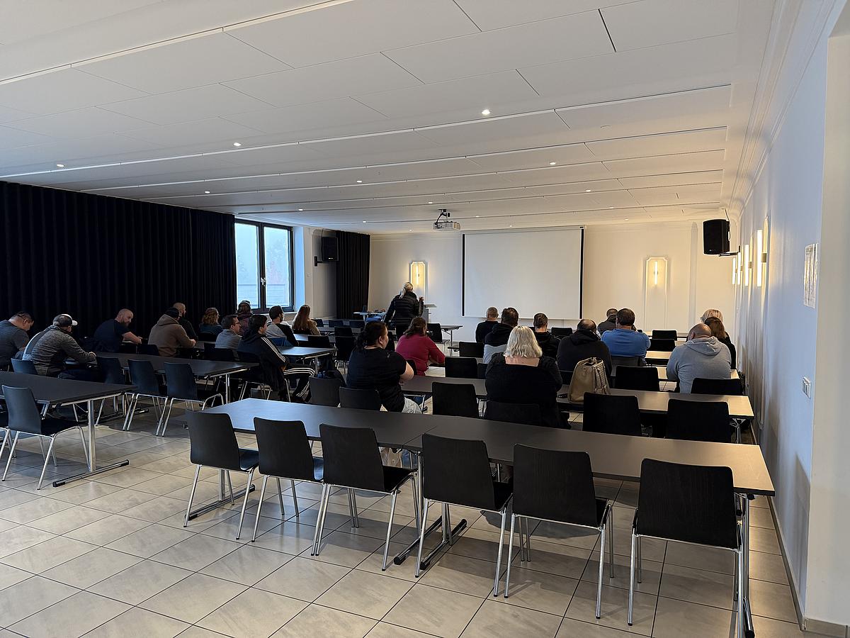 Bereits am ersten Tag hieß das BFW-Team die neuen Rehabilitanden herzlich in der Spiegelaula willkommen. Nach Anmeldung und Schlüsselübergabe folgte eine informative Campus-Tour, bei der die Teilnehmenden unter anderem die Mensa, die Lehrmittelausgabe und das Workout kennenlernten.