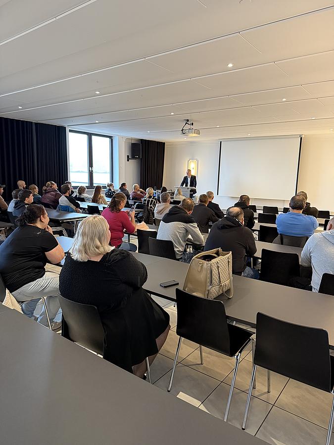 Am zweiten Tag ging es offiziell weiter: Die Geschäftsführung sowie die Sozial- und Integrationsberater stellten sich vor – sie sind das Herzstück der Einrichtung und stehen während der gesamten Reha-Zeit als kompetente Ansprechpartner zur Seite. Im Anschluss erfolgte die Klasseneinteilung, die Klassenleiter begrüßten ihre Gruppen – und der Startschuss fiel für drei intensive Monate des Vorkurses.