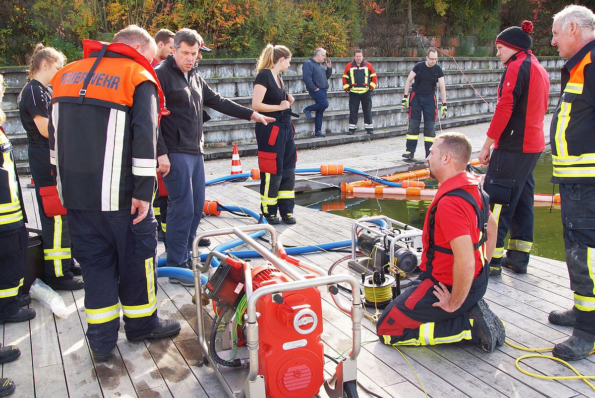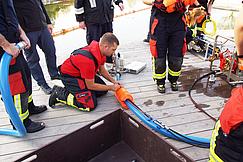 Um für den Ernstfall vorbereitet zu sein, wurden zahlreiche praktische Übungen am Strand von Regenstauf absolviert. „Die Freiwillige Feuerwehr trägt einen maßgeblichen Beitrag dazu bei, dass am und um den Campus herum Sicherheit garantiert ist“, so Markus Neumüller (Geschäftsbereichsleitung Technischen Immobilienmanagement). Den Eckert Beach stellten die Eckert Schulen im Rahmen der Ölwehr Ausbildung gerne als praktische Übungsmöglichkeit zur Verfügung. „Wir pflegen seit Jahren eine gute Zusammenarbeit mit der örtlichen Feuerwehr und schätzen das Engagement und Ehrenamt sehr“, betont Neumüller.