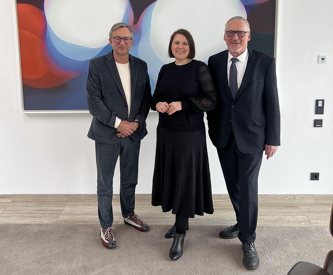 „Als subakademische berufliche Bildungseinrichtung kämpfen wir aber auch mit Thematiken, die nur die Politik in Berlin letztlich lösen kann und muss. Dabei darf der Fortbestand des bewährten Systems der beruflichen Aufstiegsqualifizierung zum Meister, Fachwirt oder Techniker nicht durch radikale Entscheidungen zunichtegemacht werden“, betonten Vorstand Stephan Koller und Geschäftsbereichsleiter Thomas Skowronek im Gespräch mit der Bundestagsabgeordneten.