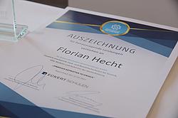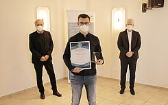 Den erfolgreichsten Studierenden mit einer Abschlussnote zwischen 1,0 und 1,5 wurde zudem eine besondere Ehre zuteil. In Anerkennung ihrer Leistung bekamen Sie die 2020 erstmals verliehene „Eckert-Trophy“ von Alexander Eckert Freiherr von Waldenfels (Vorstandsvorsitzender der Eckert Schulen) und Markus Johannes Zimmermann (Geschäftsführer und Schulleiter der Dr. Eckert Akademie) überreicht. Über die Trophäe freuen können sich der Staatlich geprüfte Bautechniker Veit Auer (Abschlussnote 1,4) und der Staatlich geprüfte Elektrotechniker Florian Hecht (Abschlussnote 1,05).