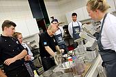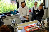 Ausgeruht und voller Tatendrang starten am nächsten Morgen die ersten beiden Gruppen in der Lehrküche. Dort geht es gleich auf zur Pastareise durch ganz Europa mit Profikoch Ralf B. Meneghin. Mehl und Wasser stehen auch bei Siegfried Brenneis ganz oben auf dem Rezeptblock. Er ist Weltmeister der Bäcker und backt mit den Jungköchen dementsprechend große Workshop-Brötchen - Urkorn zum Natursauer, vom Brot zum Beagle. Nach all der Hitze zwischen Herd und Backofen sorgt Eismanufaktur Kolibri für die nötige Abkühlung. Schritt für Schritt erklärt Katarina Rankovic die richtigen Kniffe und Insider-Tipps in der Eisherstellung. Die kontrollierte Vorbereitung und Zubereitung mit Früchten aus der Region und hochwertigen Zutaten sei dabei entscheidend.