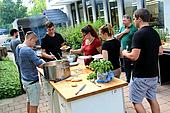Bereits der Kickoff an Tag 1 gibt die Richtung für die kommende Woche vor: Zum Start wetzen Christian Bieber und Jürgen Fleischmann von der gleichnamigen Metzgerei aus Adelsdorf ( in Mittelfranken) die Messer - fachgerecht zerlegen sie ein halbes Rind, das später seinen Weg auf den Feuerring findet. Denn kurz darauf ist Grill-Profi Fabian Beck am Zug. Er ist mittlerweile selbst eine feste Größe des Jugendcamps und führt die Teilnehmer traditionell Beck to Grill. Das bedeutet: Genial-einfache Barbecue-Kunst, kreativ inszeniert. Zwischen Beef, Scampi und Gemüse vom Grill sind sich die Jungköche einig: Der Wissenshunger ist damit noch lange nicht gestillt. Ein leckerer Ausklang für den Kickoff und gleichzeitig eine ideale Stärkung für drei spannende und fordernde Workshop-Tage.