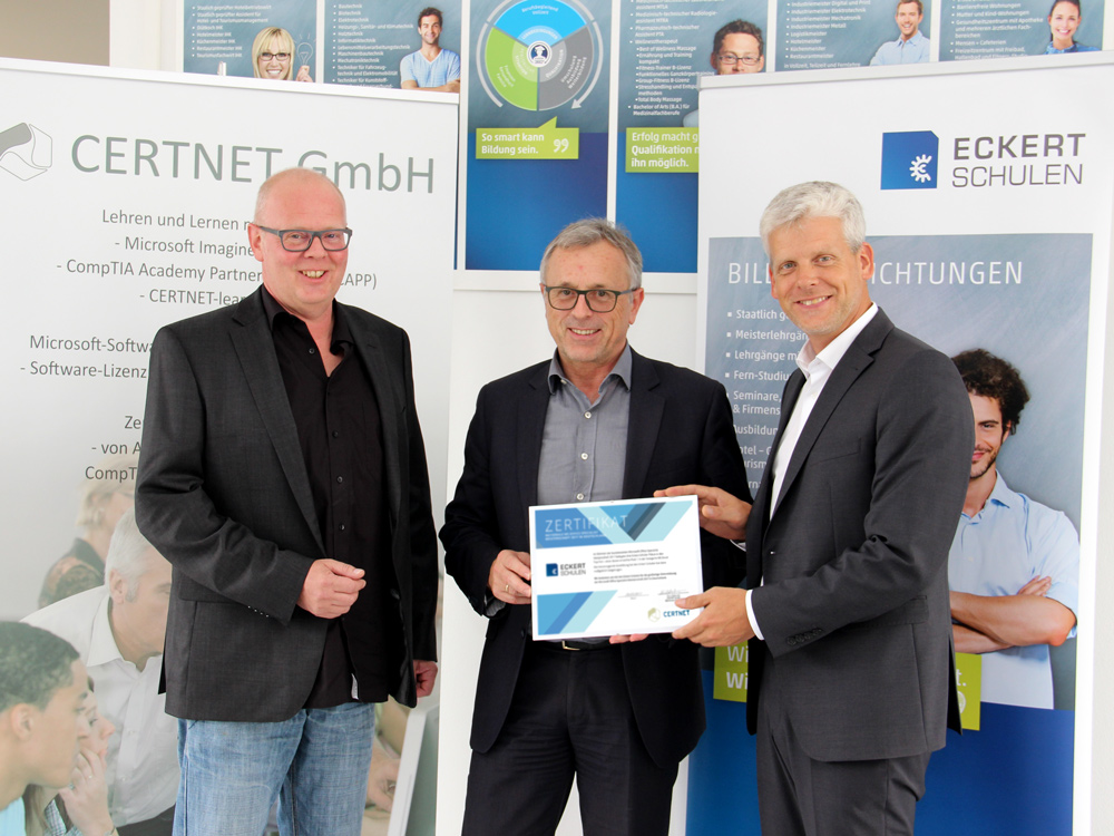 Rund 6.000 Teilnehmer stellten sich im Juli 2017 der bundesweiten Microsoft-Office-Specialist-Meisterschaft – gleich drei Eckert-Schüler schafften es in die Top 10, einer davon auf Platz 1. Nun zeichnete Dirk Hildebrand - Geschäftsführer der CERTNET GmbH – die Eckert Schulen für die hervorragende Arbeit als Certiport Testcenter (ATC) aus.